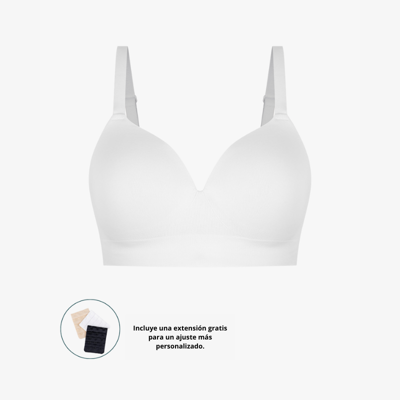 Sí, su tejido flexible y diseño sin costuras permite que se ajuste a diferentes formas y tamaños de busto. Además, incluye un extensor gratuito para mayor personalización del ajuste.