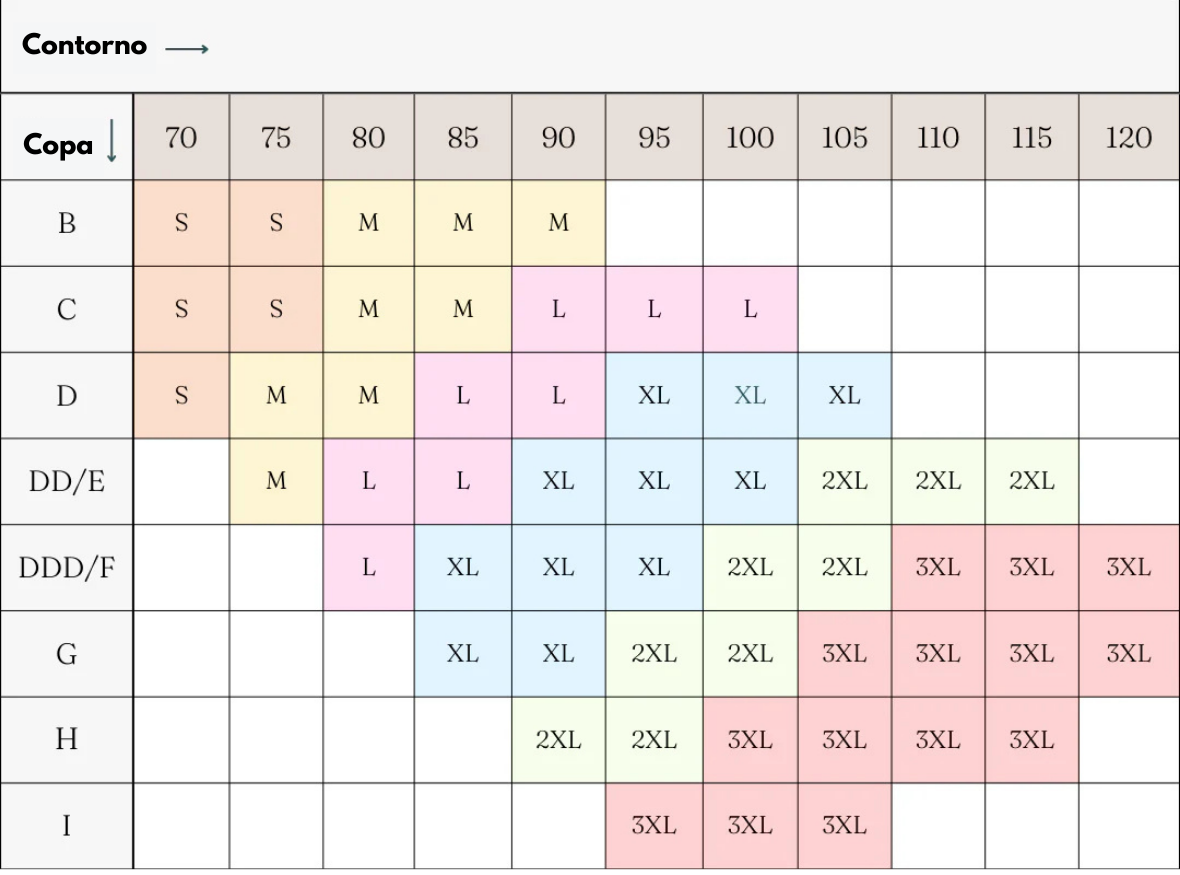 Encuentre su talla perfecta utilizando nuestra guía de tallas. Simplemente combina circunferencia y copas.